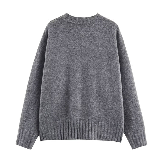 Round neck long sleeved loose fitting pullover knitted sweater for women